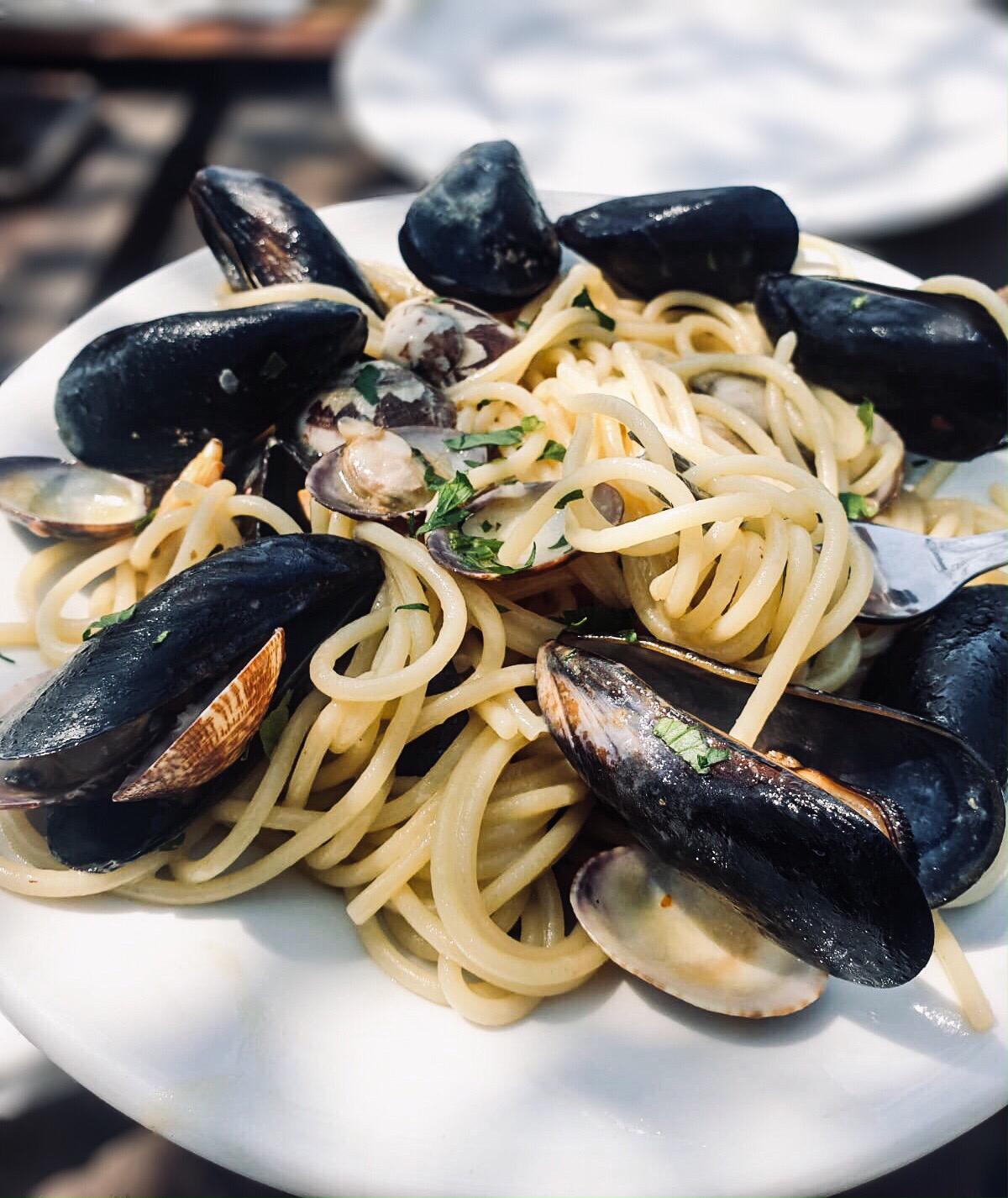 Uno dei vantaggi del Moai é sicuramente il suo essere una spiaggia libera attrezzata, quindi viene lasciata a chiunque la libertà di sistemarsi sulla spiaggia senza l’obbligo di acquistare lettino e/o ombrellone, ma allo stesso tempo si ha la possibilità di usufruire dei servizi principali tra cui il bar, bagni e docce pubbliche e il ristorante dello stabilimento. Se siete stanchi del solito pranzo al sacco e volete provare qualcosa di più sostanzioso potete quindi andare al chiosco dello stabilimento e scegliere per il vostro pasto tra un’ampia varietà di opzioni: o un semplice panino oppure un pasto completo con antipasti, primi piatti, frittura di gamberi e calamari, contorni, tra cui vari tipi di insalate e frutta. C’è anche un banco adibito solo alla frutta dove poter acquistare gustose e ricche macedonie. Vi consigliamo comunque per il pranzo i primi piatti di mare. Le porzioni infatti sono abbastanza abbondanti e i prezzi sono medi: per fare qualche esempio gli spaghetti con le vongole e cozze o i paccheri cozze e pecorino vengono 10 € , mentre spaghetti alle vongole 13, tonnarelli allo scoglio 12, gnocchi con patate, vongole e zucchine julienne 13. Anche gli altri piatti si aggirano intorno agli 8-12 € . Certo comunque va precisato che quello del Moai non é sicuramente un ristorante di pesce perché la qualità dei piatti é ben lontana dall’essere eccellente e non vi é servizio al tavolo. É una tavola calda con la possibilità di mangiare con i vassoi sui tavoli dello stabilimento, quindi è adatto per un pranzo veloce quando ci si vuole godere la giornata di mare.