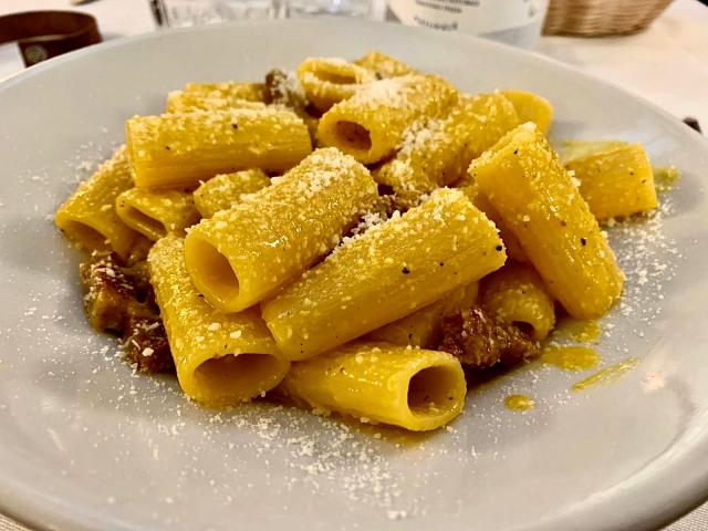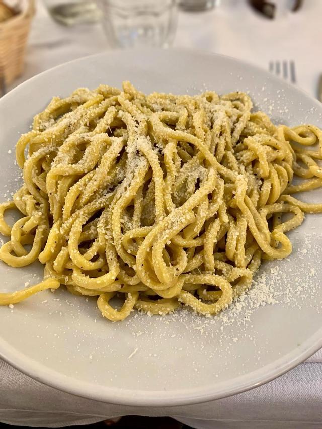 La cacio e pepe invece era mantecata poco e non risultava cremosa, dopo poco tempo i tonnarelli diventavano un po’ collosi.