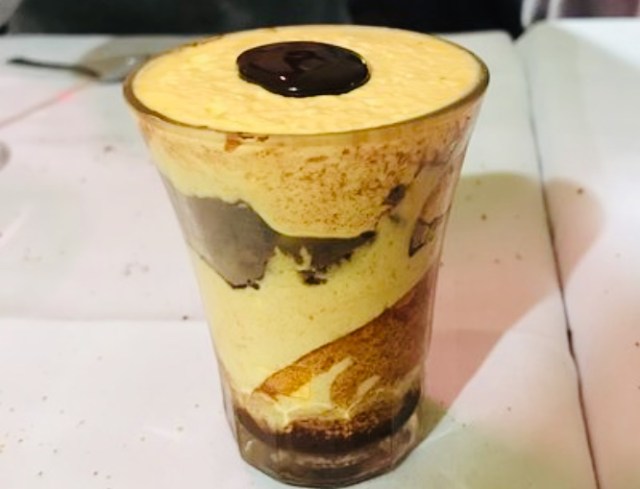Buono il dolce, il tiramisù al bicchiere che è la specialità del locale (costo di 6€).