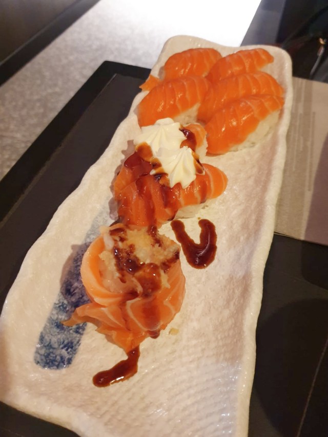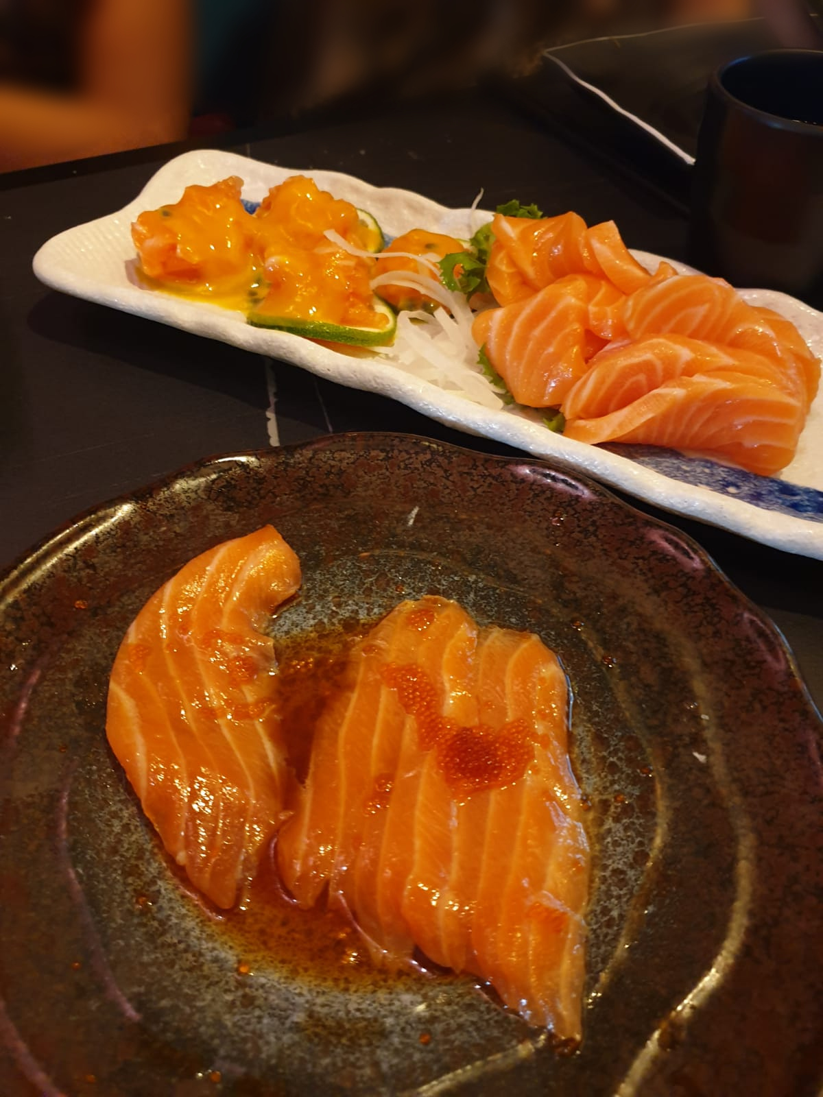 Goki propone cucina giapponese e cinese all you can eat al prezzo di 15,90€ a pranzo e 23€ a cena escluse bibite e dolci. Si può ordinare attraverso un tablet e il numero di ordinazioni è illimitato. Il menù propone antipasti misti come ravioli alla griglia e al vapore, sia con carne che con pesce, involtini primavera, tartare di salmone con lime, salsa maracuja e avocado, carpaccio di salmone, e varie pietanze alla piastra: shake tataki (salmone scottato con salsa tataki), kushi sake (spiedino di salmone alla griglia con salsa teriyaki), yaki ebi (spiedini di gamberi). Forse ciò che ci ha convinto di più sono stati gli antipasti cinesi che abbiamo trovato particolarmente gustosi e cucinati bene (ottimi gli involtini primavera!).