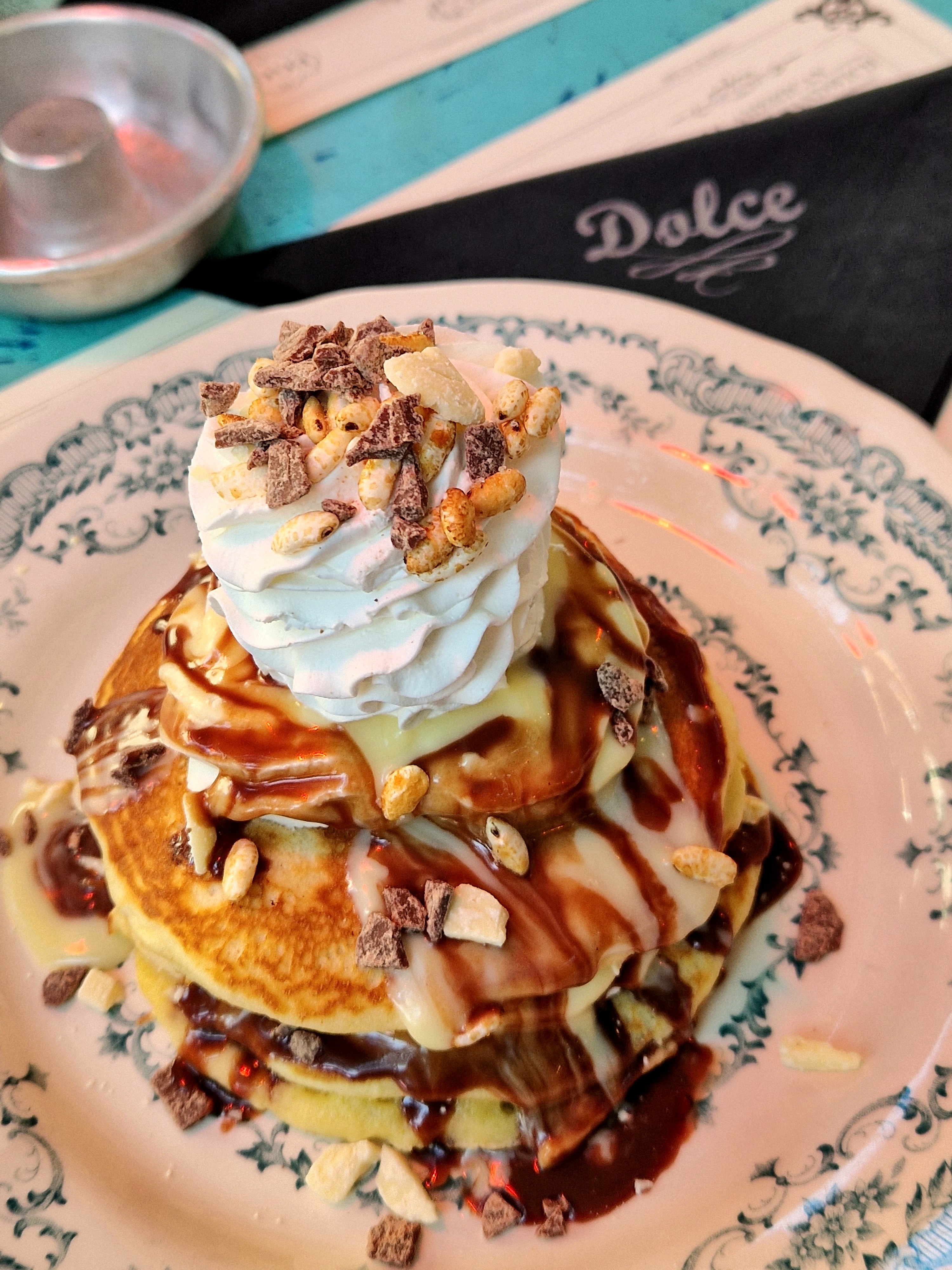 Da amanti della colazione dolce abbiamo sperimentare i pancakes.. imperdibile è il Kinder, un mix di crema di latte, riso soffiato, crema al cioccolato al latte e al cioccolato bianco con sopra panna fresca, una vera bomba di piacere! Per chi vuole rimanere più leggero, dato che a volte troppa farcitura può risultare stucchevole, c’è anche una versione di pancake più “light”: parliamo del pancake “tutti i frutti” con frutta fresca e sciroppo d’acero.