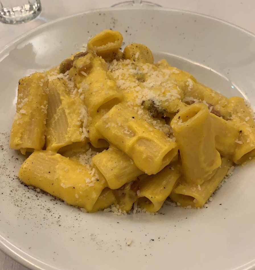 Passando ai primi, troverete ovviamente i classici romani: rigatoni alla carbanora, bucatini all’amatriciana, gricia, tonnarelli cacio e pepe e penne all’arrabbiata. Ci sono anche alcune specialità della casa come gnocchetti fatti a mano con ragù di salsiccia e maltagliati panna tartufo e guanciale. Le porzioni sono abbondanti e la pasta fatta in casa è veramente buona. Noi siamo rimaste molto soddisfatte dai maltagliati al tartufo e vi consigliamo di provarli. I prezzi per i primi si aggirano tra un minimo di 8,50 € a un massimo di 12 €.