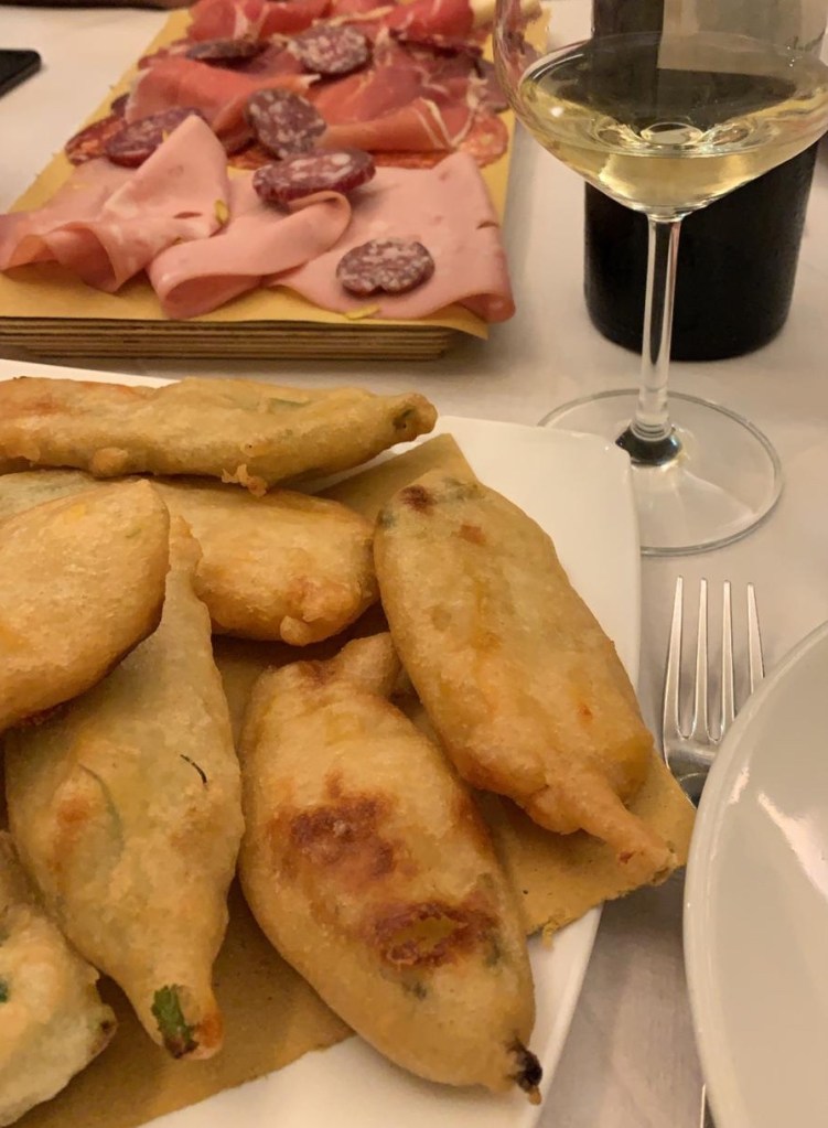 I camerieri sono disponibili e sanno consigliare i clienti. Per l’antipasto ci hanno servito due taglieri di salumi e formaggi tagliati al bancone proprio davanti a noi (un tagliere da 15€ soddisfa 4 persone), bruschette miste di gusti differenti e fritti di baccalà(4€) e fiori di zucca (3€). Possibile anche ordinare la porchetta (9€).