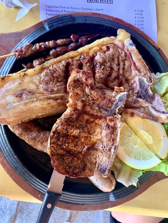 Per quanto riguarda i secondi abbiamo trovato davvero squisito il misto di carne alla brace per due persone composto da bistecca di maiale, di manzo, spiedini e salsiccia (24 euro). Meno appetitosa ma comunque buona era anche la tagliata di manzo (15 euro). Abbiamo accompagnato i secondi anche con delle appetitose verdure grigliate.