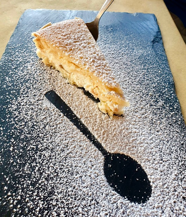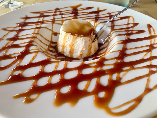 Non potevamo non concludere il pasto assaggiando i dolci della casa: torta ricotta e pere, tiramisù, millefoglie da comporre al momento (tutti 6 euro) e infine pannacotta al caramello (5 euro), il piatto più buono tra tutti. La presentazione di questi piatti era molto convincente: solo a guardarli avevamo l’acquolina in bocca!