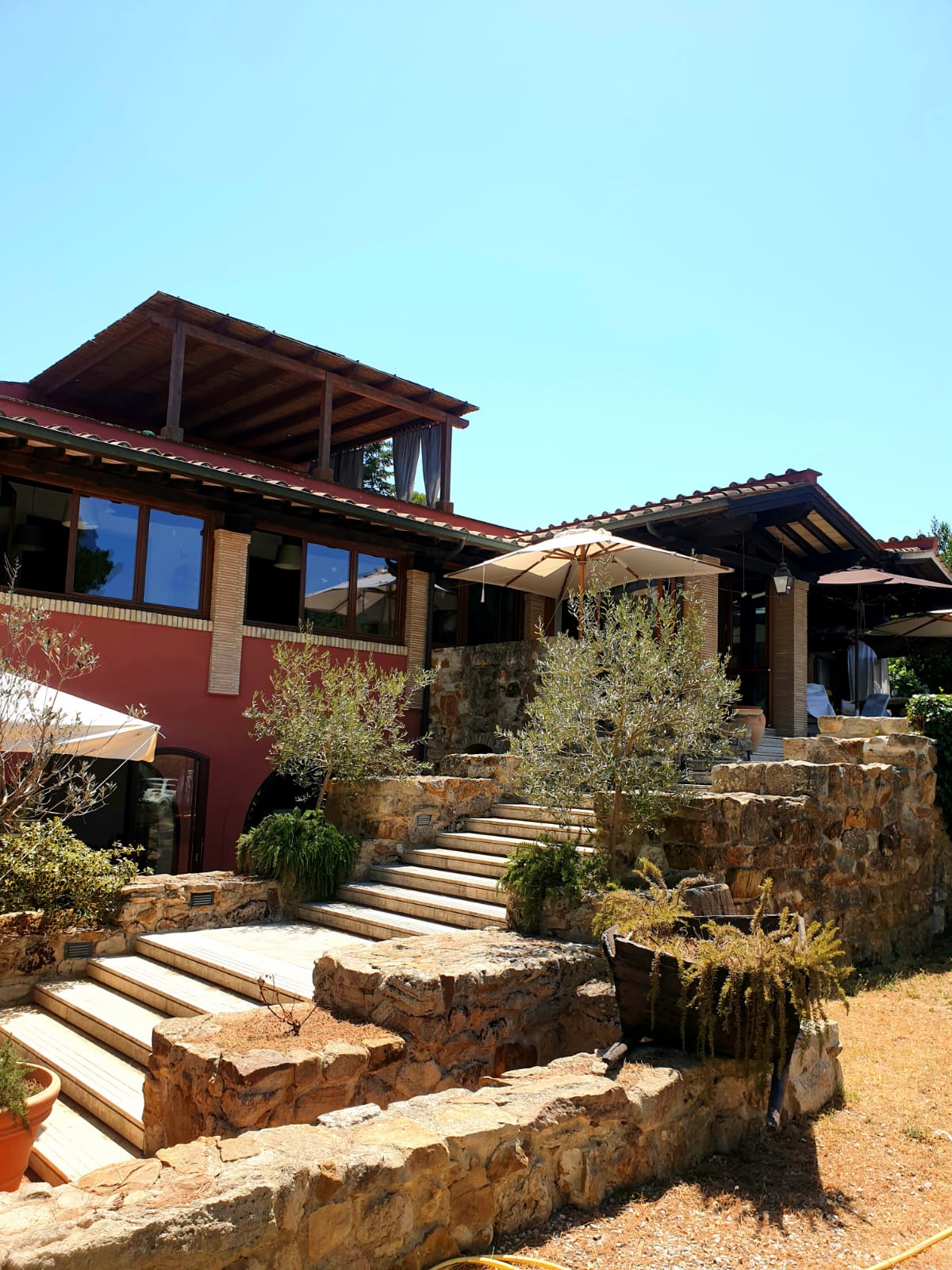 Colpisce innanzitutto la location, che d’estate in particolare, quando vengono tolte le vetrate protettive, offre una meravigliosa veranda all’aperto che affaccia sul giardino. Ci sono anche altre sale al chiuso sfruttabili invece per la stagione invernale.