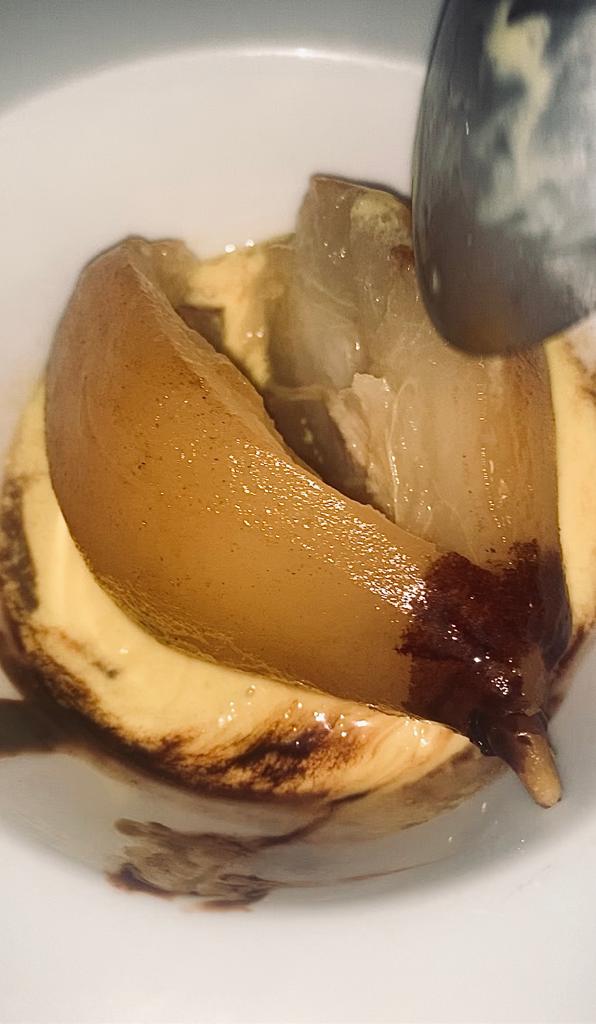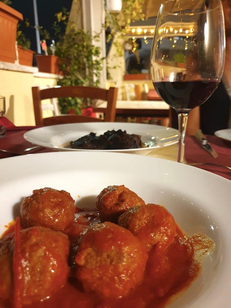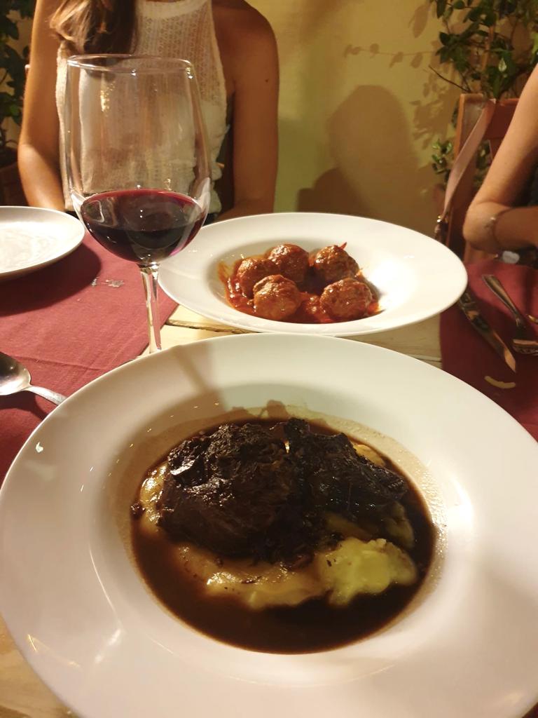Abbiamo proseguito assaggiando due secondi di carne tipici romani, che abbiamo approvato: le polpette al sugo alla romana con scorza di limone (14 euro) e il guancia di manzo cotto con vino rosato per 6 ore su purea di patate (17 euro). E’ stata una sfida arrivare al dolce con tutti questi piatti, ma non potevamo perdercelo! Abbiamo quindi proseguito con la crema di tiramisù (6 euro) e la pera cotta nel moscato (4 euro). Per quest’ultima avevamo un pò di pregiudizi, dato che ci piacciono di più i dolci classici, ma ci ha sorpreso in modo positivo.