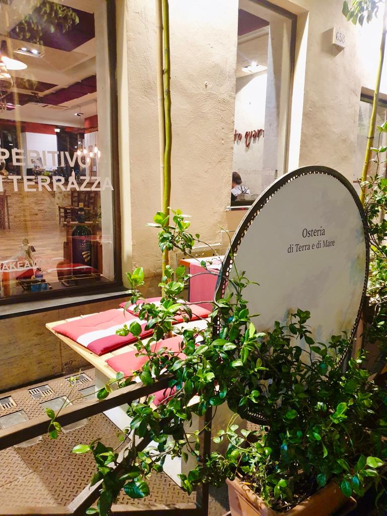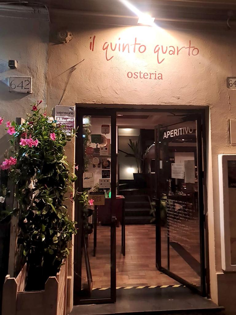 Stavolta parliamo della cena che abbiamo avuto il piacere di provare da “Il Quinto Quarto“. Si tratta di un’osteria di carne e di pesce diretta dallo chef Federico da 15 anni, prima situata a ponte Milvio e poi trasferita a collina Fleming in una location molto carina. L’aspetto è quello tradizionale dell’osteria ma è organizzata su due piani, di cui uno è una terrazza all’aperto che è decorata con varie piante e lucine che pendono dal soffitto e rendono l’atmosfera più piacevole e particolare. In generale l’arredamento del locale sia interno che esterno ci è piaciuto. Sempre al piano superiore c’è anche un biliardino con cui poter sfidare i propri amici dopo cena. E’ un’idea simpatica per rallegrare la serata, soprattutto quando in sfida va anche lo staff. Ebbene sì, il personale che, oltre che da Federico, è composto anche da due ragazze che servono ai tavoli, non si tira indietro, è molto simpatico e alla mano! Abbiamo conosciuto a sorpresa anche Paolo Ruffini che ha giocato con noi e gli altri ragazzi del locale.