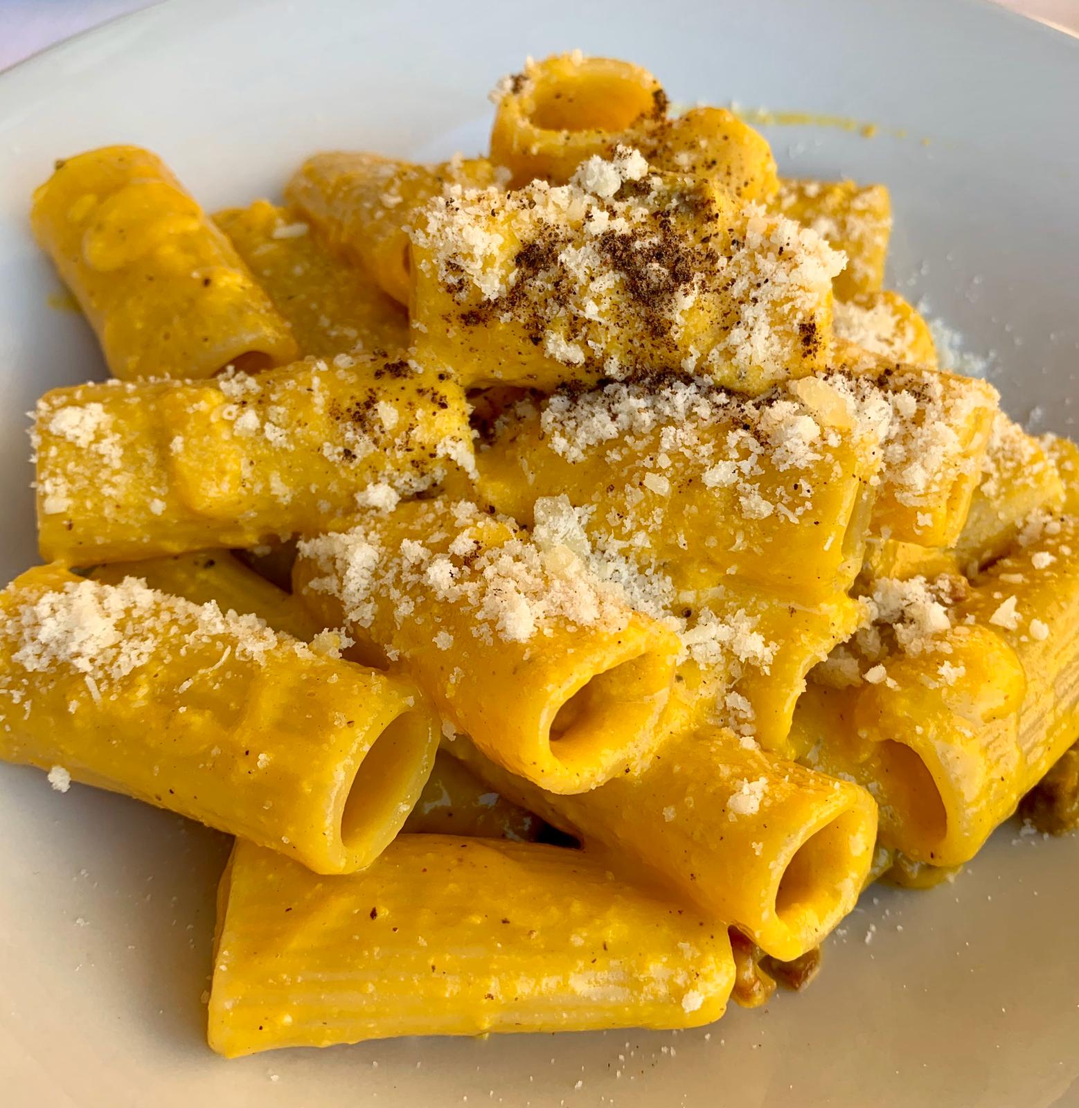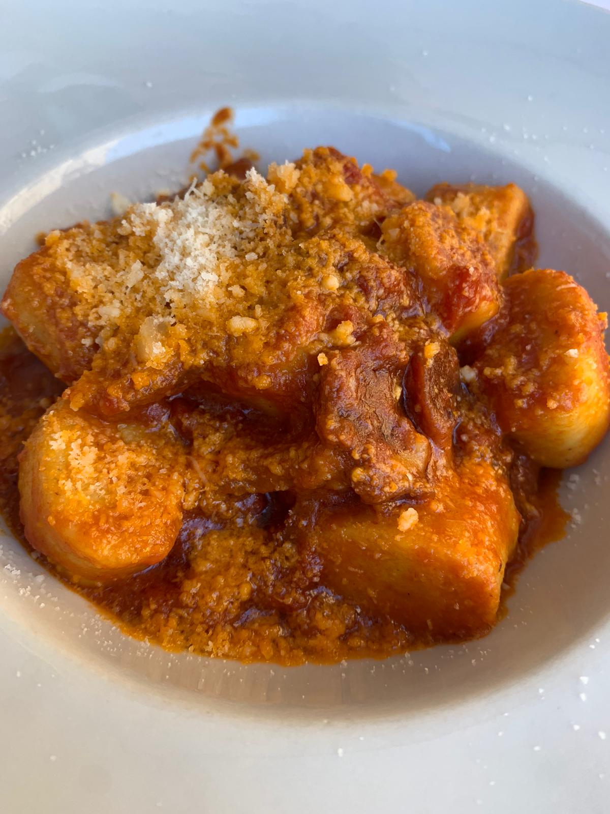 I nipoti mantengono ancora il menu della nonna, che propone svariati primi romani tra cui gli gnocchi di patate di Tarquinia all’Amatriciana (ricetta originaria del 1948), tonnarelli freschi all’uovo alla Cuccagna (dal 1961), ravioli ripieni di ricotta e spinaci alla Tiberina al sugo di nonna Lella fatto con ragù di tre carni, porcini secchi e regaje di pollo (dal 1959). Noi abbiamo optato per gli gnocchi (18 euro) e poi abbiamo assaggiato anche i rigatoni alla carbonara (20 euro). Forse ci aspettavamo qualcosa in più da questi ultimi, considerando la fama del locale, però non si può dire che non siano buoni. Tra i due primi che abbiamo provato abbiamo dunque preferito gli gnocchi, molto buoni. Quindi il consiglio è di puntare sulle specialità tramandate dalla nonna. Le porzioni erano abbondanti e il servizio è stato rapido.
