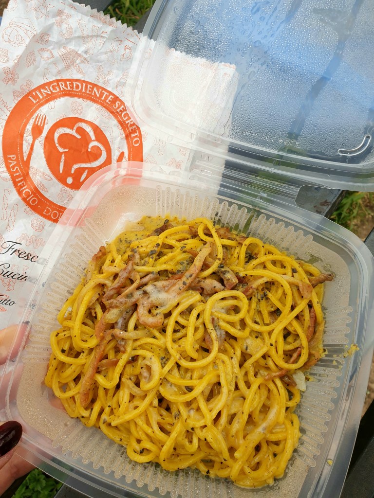 L’Ingrediente Segreto è specializzato in pasta all’uovo di tutti i tipi (Fettuccine, Tonnarelli, Tagliolini, Pappardelle, Gnocchi, Casarecce, Cavatelli, Paccheri, Fusilli Napoletani o Integrale), fatta a mano e poi cucinata espressa su ordinazione. La particolarità consiste nel condimento che potrete scegliere a vostro piacimento tra varie interessanti alternative. Una di queste è per esempio la carbonara tartufata che abbiamo assaggiato noi: una vera delizia per il palato e non a caso classificata nel menu “gourmet”. L’aspetto invitante ne è la prova. Ma non mancano anche gli altri classici romani insieme a molti altri condimenti (oltre 25) tutti da scoprire (giusto per citarne qualcun altro: tartufi e funghi champignon, broccoli e ‘Nduja, carciofi e pecorino). Con quale pasta abbinarli? Lo scegliete voi! Infatti ce n’è per tutti i gusti e tutte le età: è disponibile anche un menù per bambini (5 euro). Sicuramente la prossima specialità che proveremo sarà la pasta ripiena, che fa parte di un altro menu dedicato e comprende tortellini, ravioli o lasagna (prezzo di 7.90 euro). Ciascun menu, compreso quello con pasta semplice (menzionata all’inizio, prezzo 6.90 euro) comprende una bevanda (acqua o lattina da 0.33 cl). Il rapporto qualità-prezzo è assolutamente buono. Per saperne di più visitate il loro sito su https://www.ingredientesegreto.it/i-menu/.