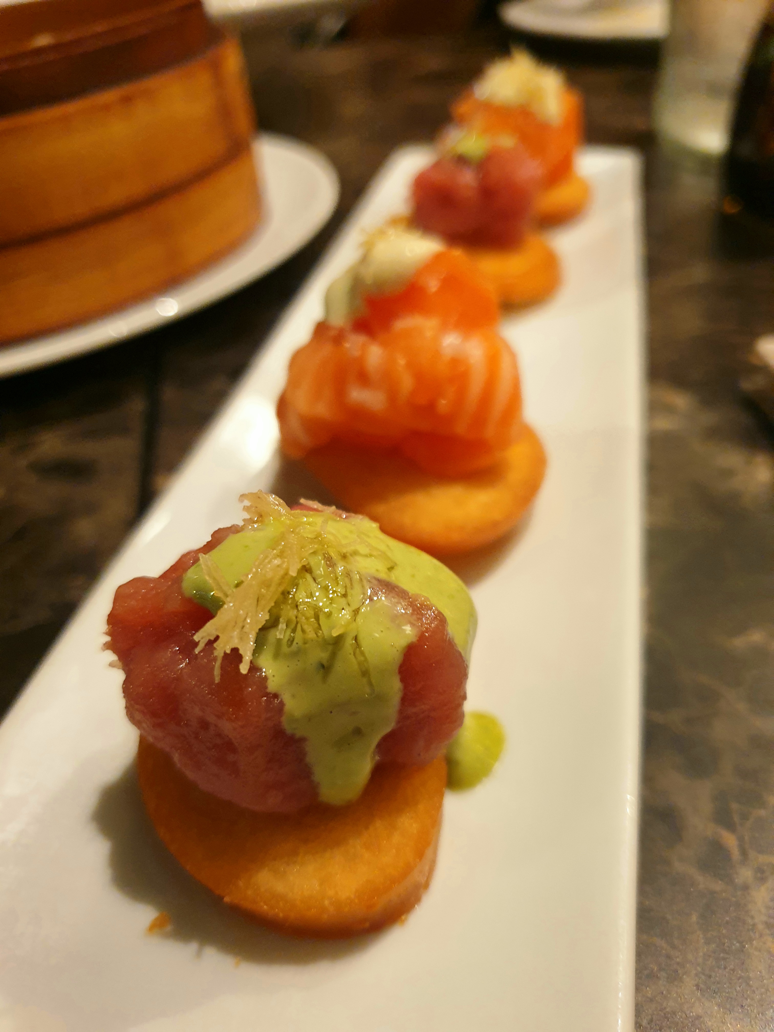 La cucina è all you can eat con menù di €18.90 a pranzo e €24.90 a cena. Tramite i tablet, da cui è possibile ordinare, troverete tutte le specialità del locale organizzate per tipologia. Partendo dai classici antipasti, ovvero i ravioli al vapore e gli involtini di primavera, e i semplici Sake Hosomaki, abbiamo deciso di provare alcune specialità targate Neko davvero buone e particolari: le Fish Tapas (foto al centro) con pane fritto salmone , tonno , Mayo al basilico, Mayo al tartufo; le tartare di manzo con avocado, fiore di zucca e salsa teriakysu (Ura beef) e Ura Pink (nella foto a destra) con tonno, insalata, fiori di zucca, Mayo alla ciliegia.
