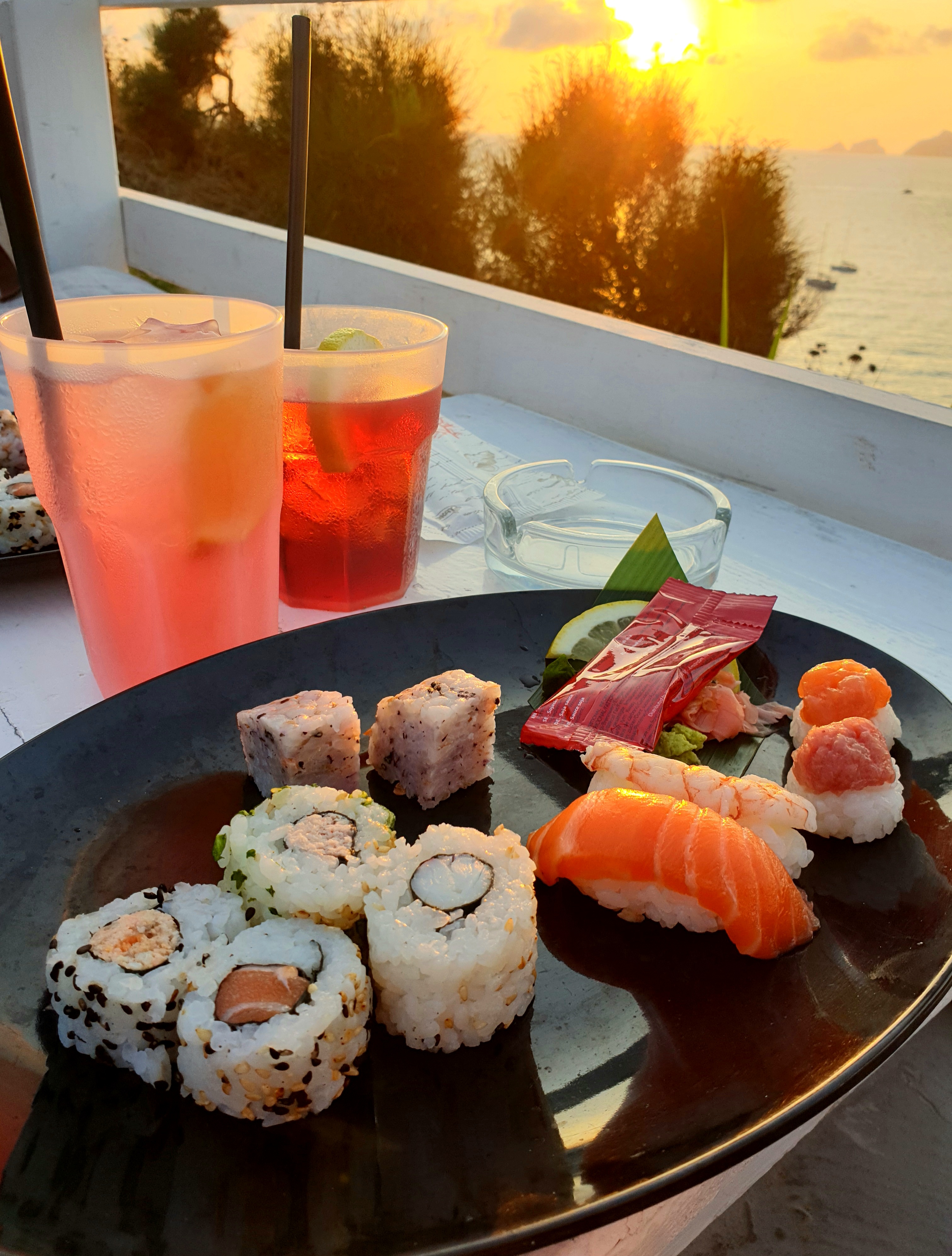 Oggi vi portiamo sulle terrazze panoramiche di Ponza, un posto perfetto per ammirare il tramonto sull’isola. Parliamo delle “Terrazze Chiaia di Luna”, che affacciano sull’omonima spiaggia, ormai chiusa al pubblico ma ammirabile dall’alto in tutta la sua bellezza. Piano bar e poi Dj set vi accompagneranno a partire dal tramonto per tutta la serata. Siamo state fortunate a trovare posto sui cuscini che affacciano direttamente sul panorama per godere appieno della location. Infatti il locale oltre ai gettonatissimi divanetti e i cuscini ha anche vari tavoli, da dove non si vede altrettanto bene il panorama, essendo più distanti però dall’affaccio o con visuale limitata. Quindi vi diamo un consiglio: arrivate all’apertura (ore 19) così potrete capitare nel posto migliore. Vi consigliamo di prenotare e provare a indicarlo prima in questa fase, anche perché il locale comprende tre terrazze, quelle più basse, quelle medie e quelle alte, da cui si vede il panorama in prospettive diverse. Quindi a seconda della preferenza vi posizioneranno in una lista diversa.