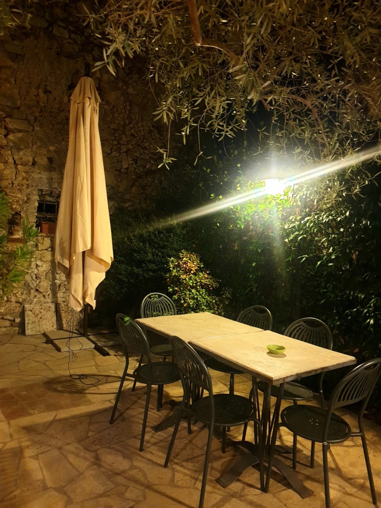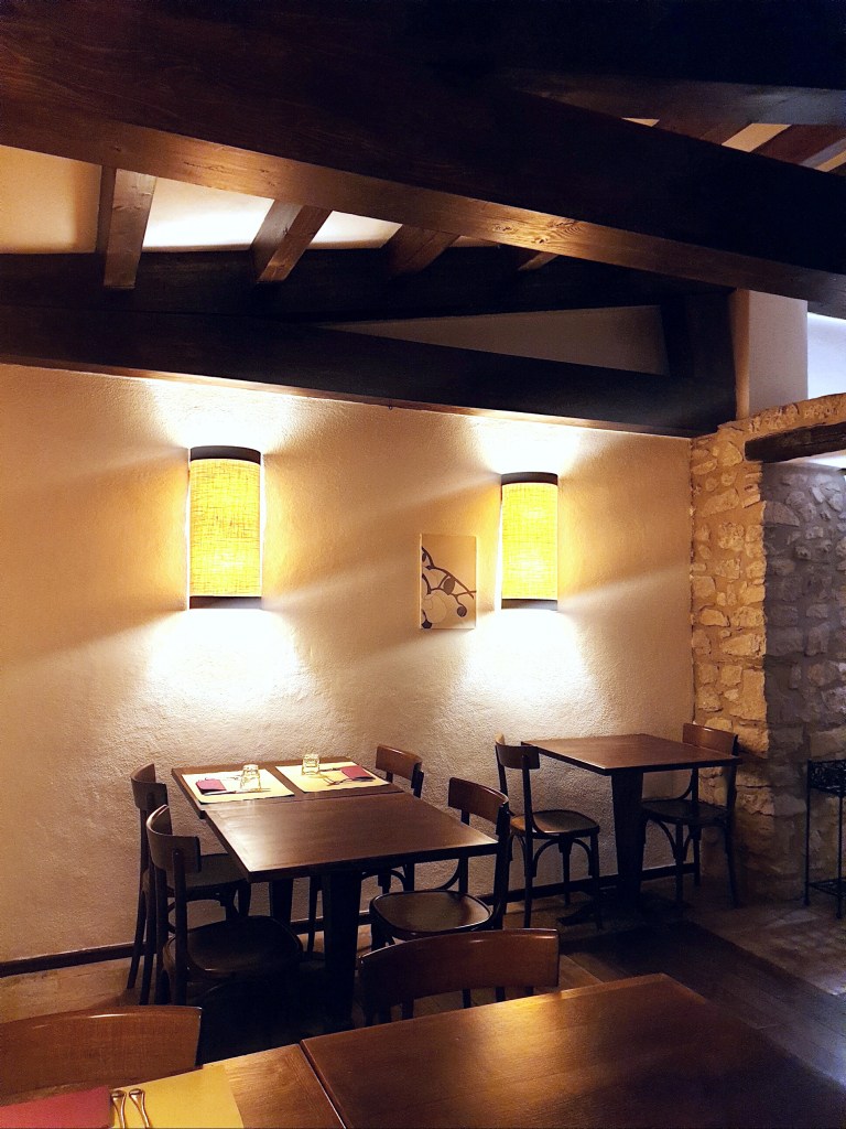 E’ molto ambito il giardino esterno in pietra circondato da alberi e piante, ma più indicato d’estate. Gli ambienti interni sono piccoli ma caratteristici per gli archi mattonati e il soffitto a travi in legno. L’atmosfera è calda e accogliente, grazie allo stile dell’arredamento, assolutamente ben curato, e alle luci soffuse, il tutto accompagnato da un sottofondo musicale rilassante. L’ambiente, molto confortevole, ci ha fatto sentire a casa!