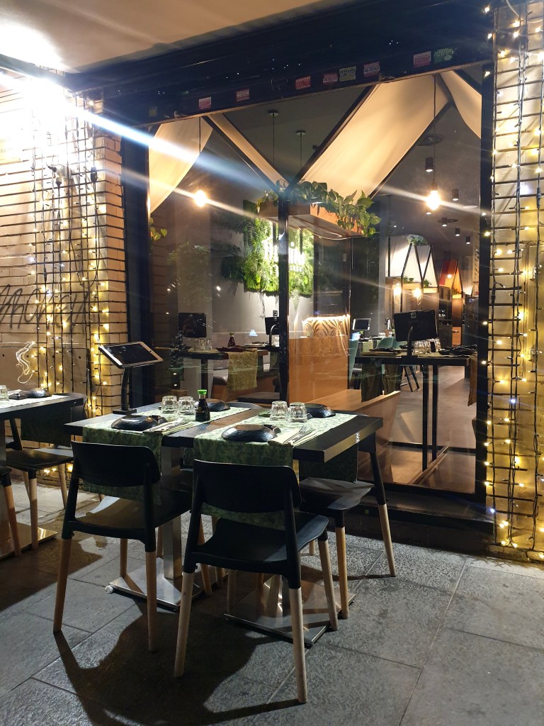 Primo impatto positivo: il locale, di design moderno, è molto curato e arredato con piante/fiori e luci decorative sia esternamente che internamente.
