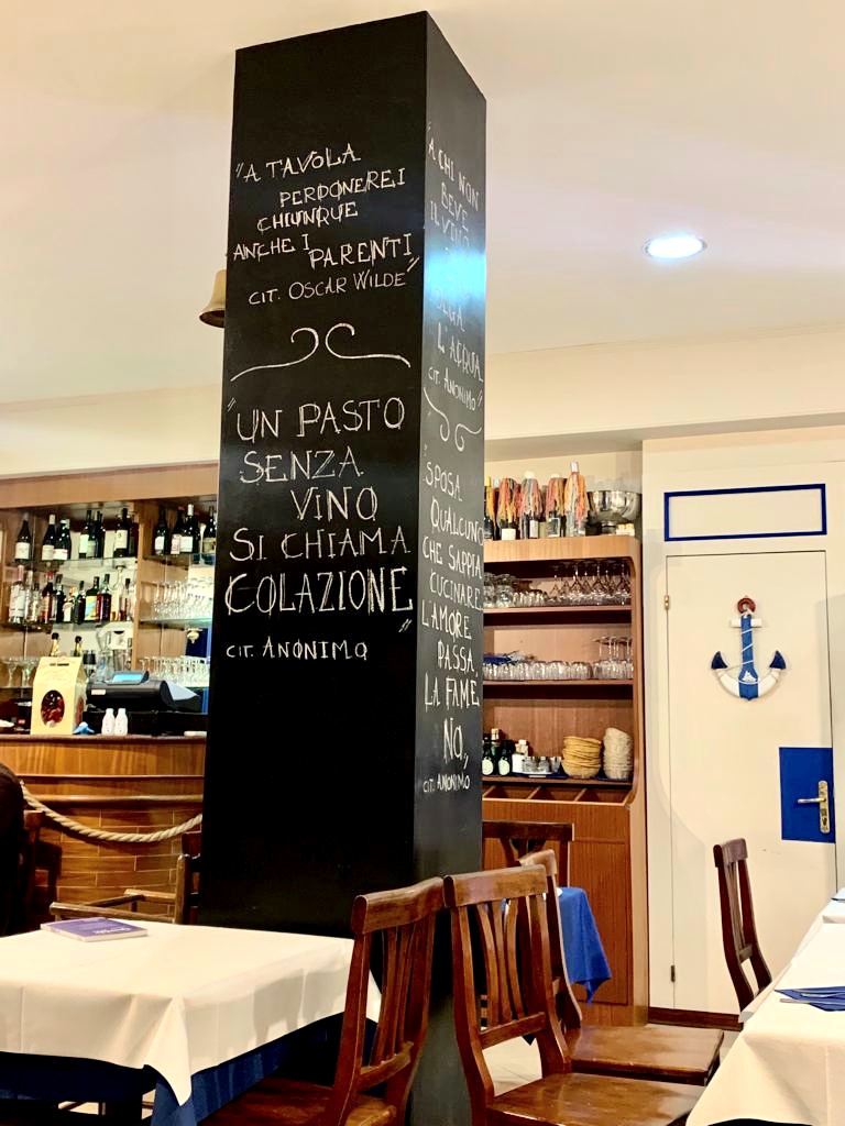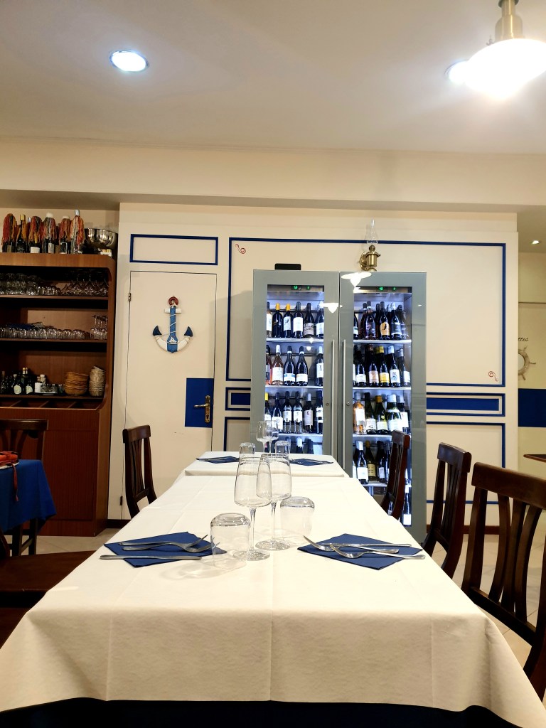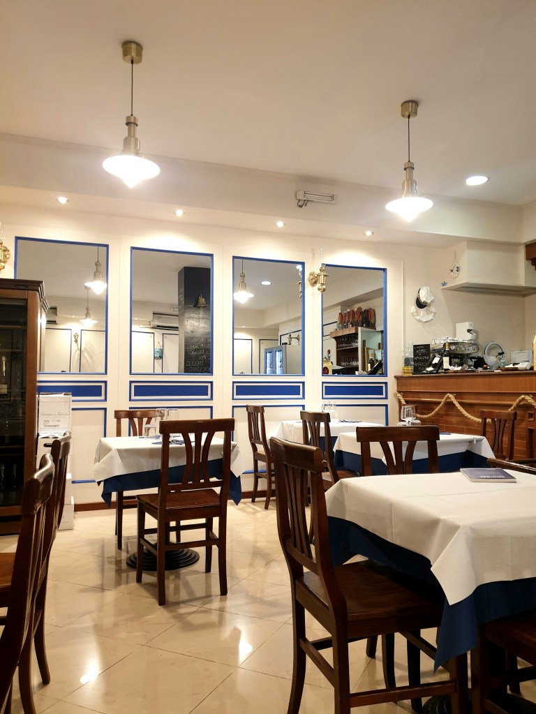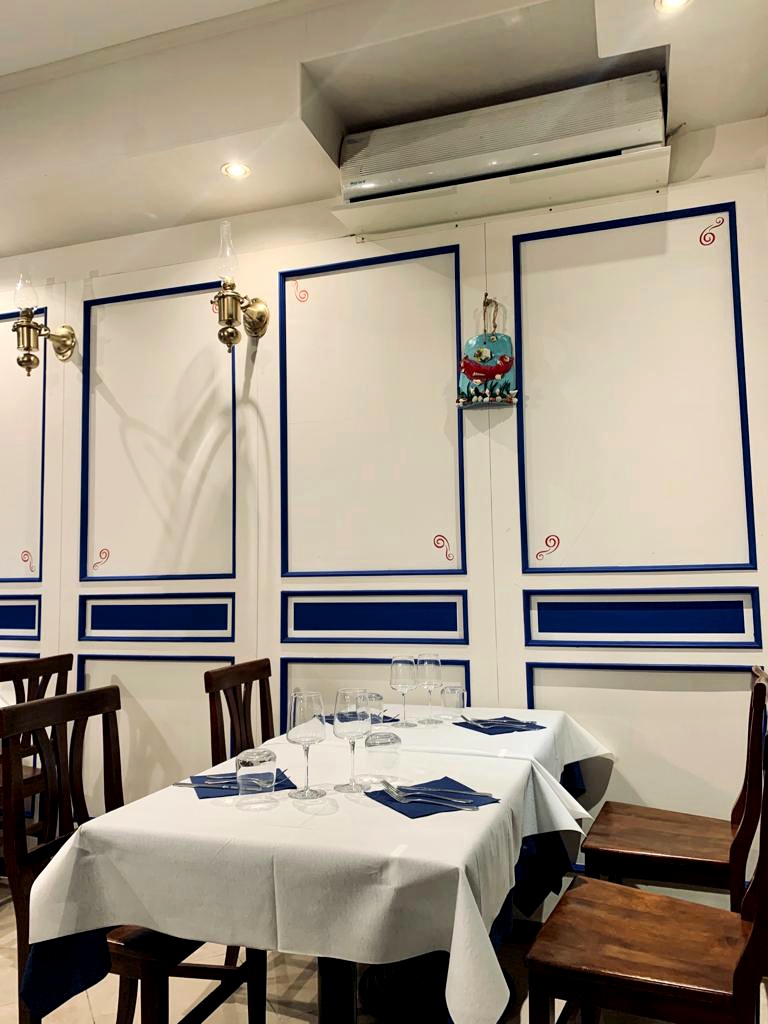 L’ambiente interno è carino, si vede che è stato recentemente ristrutturato. Potete notare tanti piccoli dettagli che richiamano l’ambiente marino così come la scelta del design dell’arredamento in generale e lo stile delle pareti, il cui colore chiave è il blu. Location a tema dunque, semplice ma elegante allo stesso tempo.