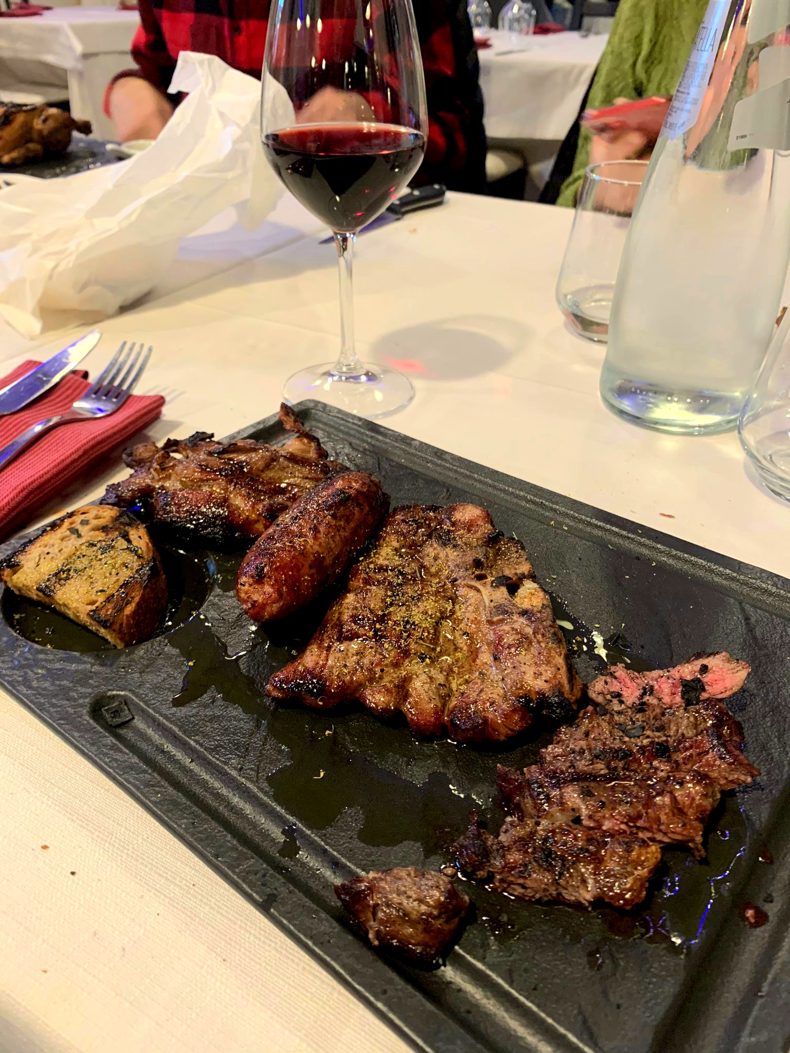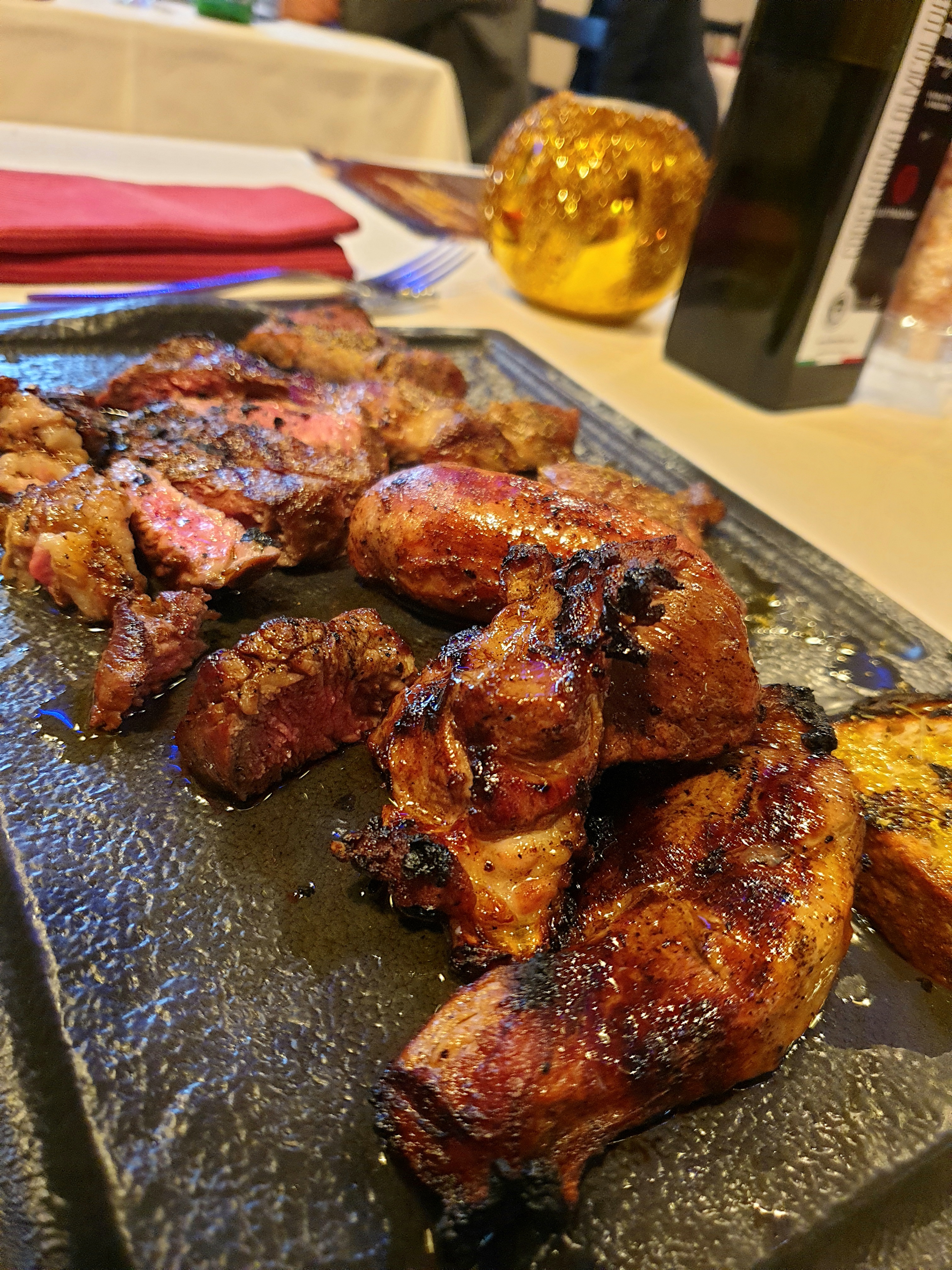 La carne è buona, selezionata con almeno 30 giorni di frollatura che la rendono più morbida e saporita. Peccato per la cottura perché alcuni pezzi erano abbastanza bruciati in entrambi i piatti alla brace.