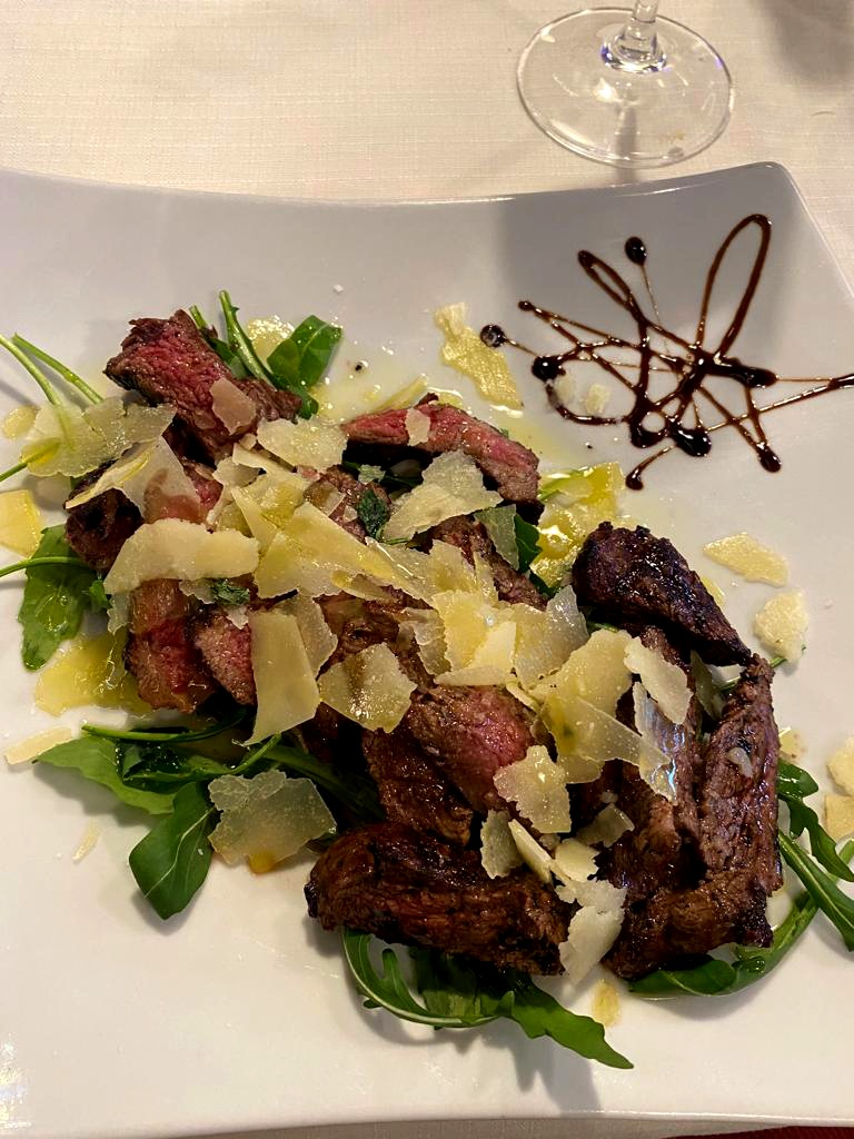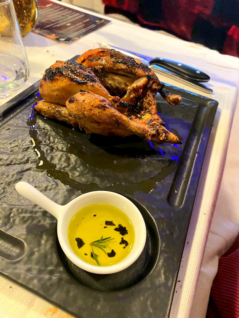 Come secondi piatti abbiamo scelto invece: tagliata di manzo con rucola e grana, buona, dall’ottimo impiattamento (16 euro), galletto alla griglia (15 euro) e mix alla brace con agnello, salsiccia, braciola di maiale e manzo (18 euro).