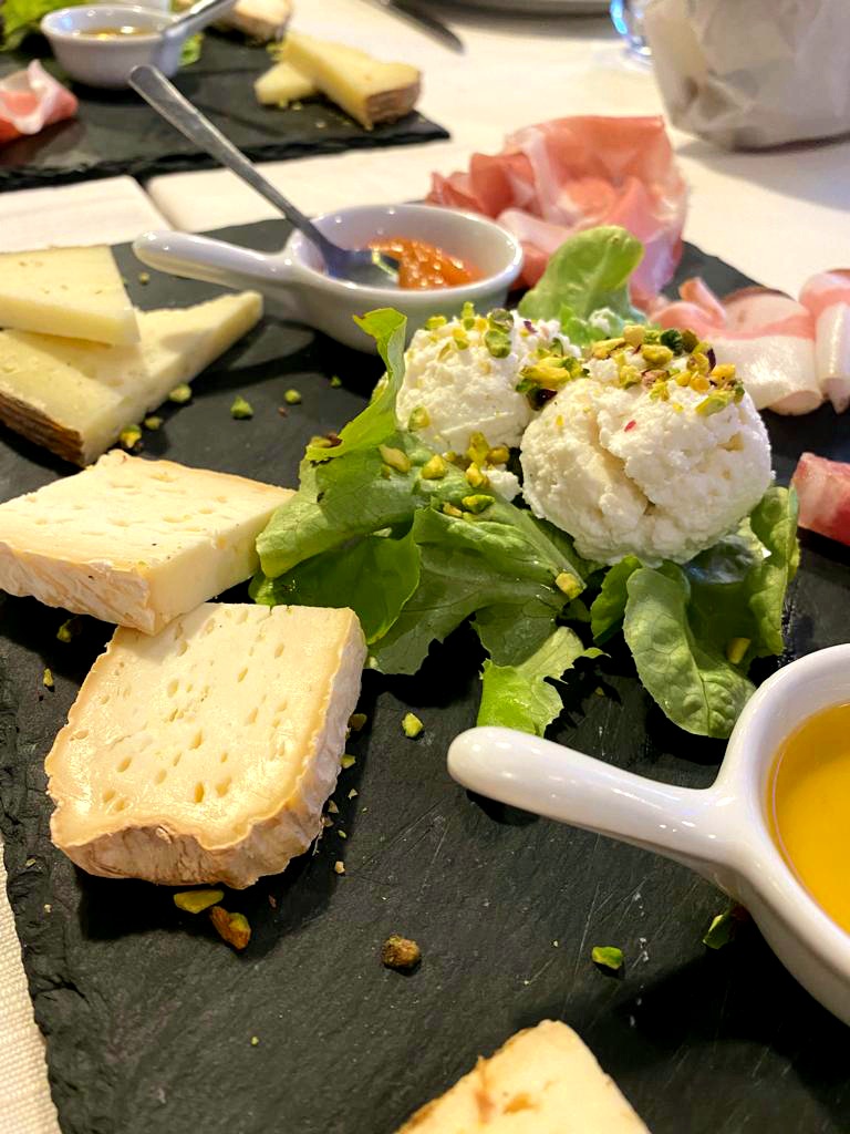 Per iniziare però non potevamo non assaggiare i salumi tipici della Tuscia serviti con il loro “Tagliere del re” (16 euro): guanciale affumicato viterbese, salame susianella, coppa di testa e prosciutto della Tuscia, accompagnati da alcuni assaggi di formaggi che comprendevano stracchino, caciotta a pasta fiorita invecchiata al fieno, cacio del re 100% pecora (stagionatura in grotta per sei mesi) e ricotta vaccina, da abbinare con miele e confettura di mele cotogne. Per finire cocotta di fagioli all’uccelletto tipici di Sutri serviti con bruschetta all’olio extra vergine di oliva. L’ abbiamo trovato invitante anche se ci aspettavamo qualcosa in più sia in termini di gusto che di quantità, bruschette un pò troppo cotte.