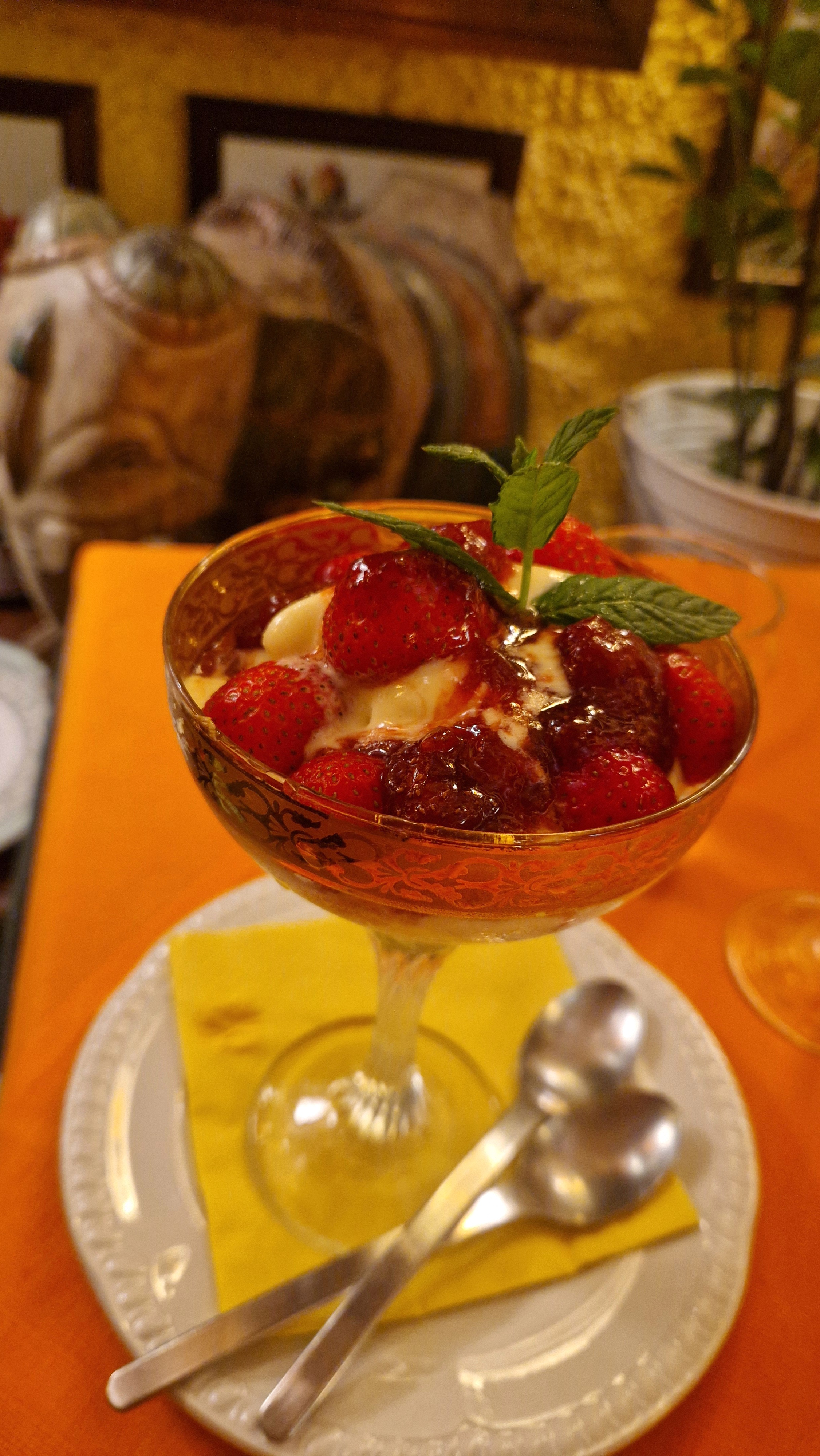 Non potevamo non terminare con i dolci: gelato con le fragole e Strudel, entrambi molto buoni, da mangiare in un solo boccone.