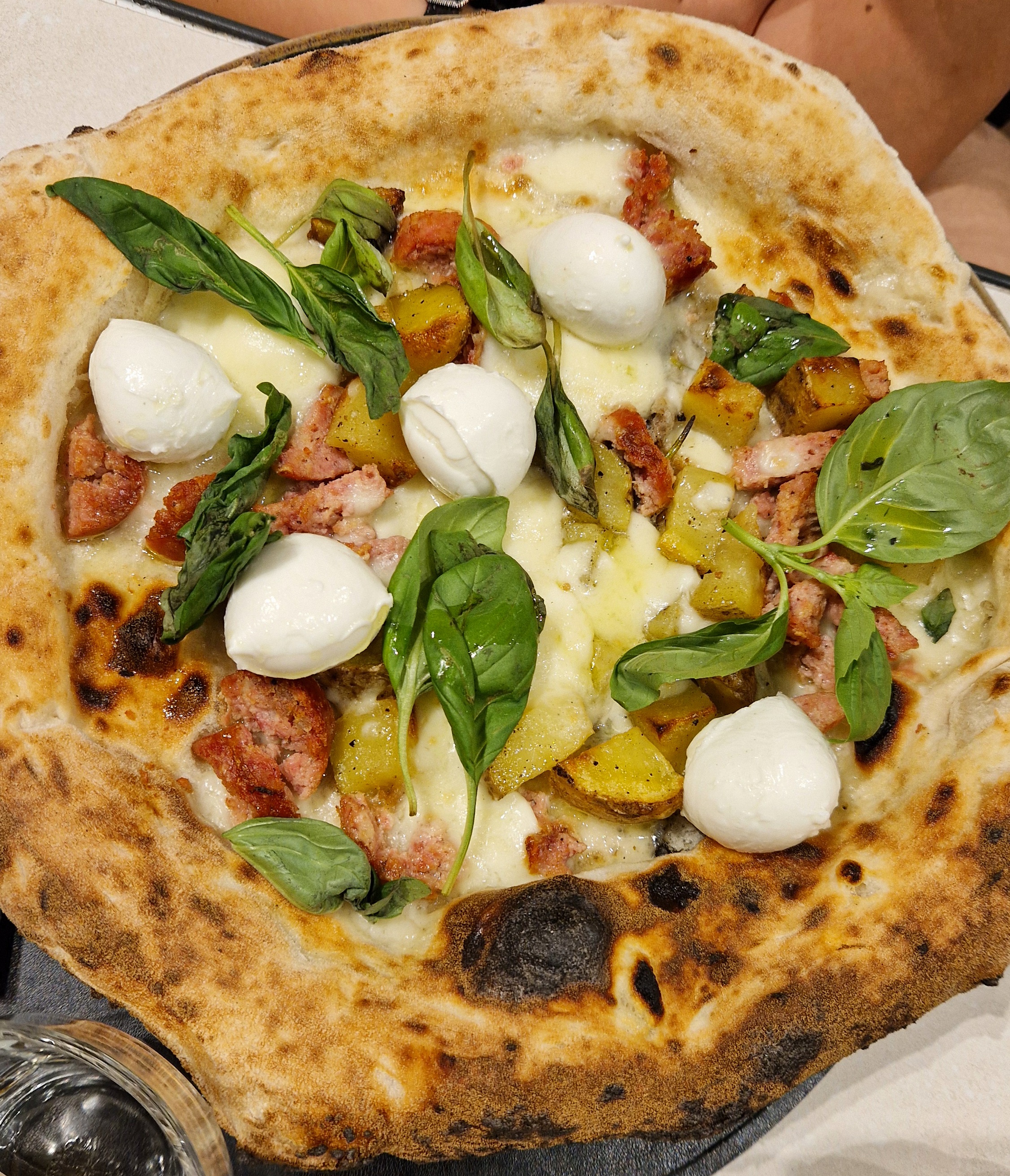 Uno dei punti di forza è sicuramente l’ampia scelta delle pizze, unita alla qualità. Oltre alle classiche opzioni, ci sono le “uniche”, tutte molto buone e invitanti. Vi consigliamo in particolare “Napolitudine” con pomodoro, provola affumicata, polpette classiche di nonno Enzo e ciuffi di ricotta dei monti e “Tetti illuminati” base con fiordilatte dei monti, mortadella igp, granella e crema di pistacchio, scaglie di pecorino romano, olio e basilico; “Domeniche lontano” base con mozzarella di bufala dop, patate al forno, salsiccia napoletana, bocconcini di mozzarella di bufala dop, olio e basilico.